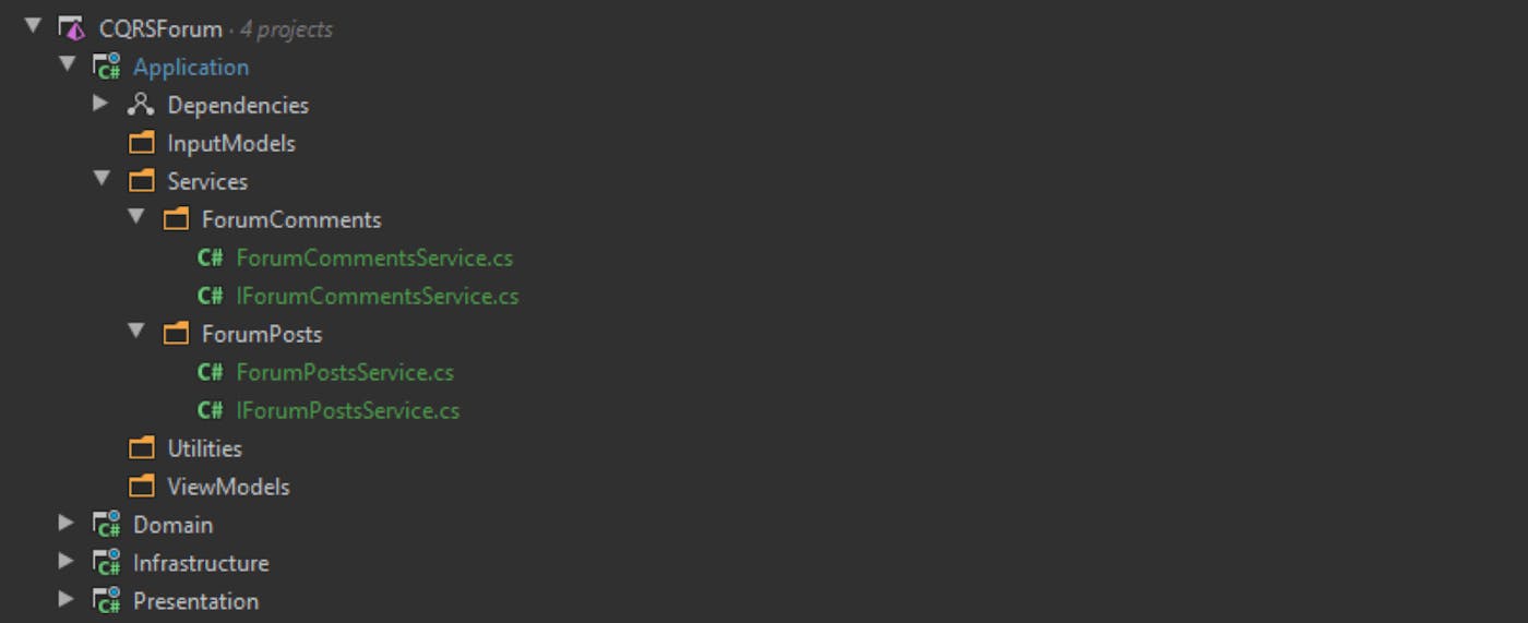 For now, let’s say we have an Application layer with the business logic separated into use cases or rather services. Perhaps you would have a service for forum posts that would contain all of the logic regarding forum posts and may be dependent upon other services. In addition, this service could possibly be reused somewhere else.