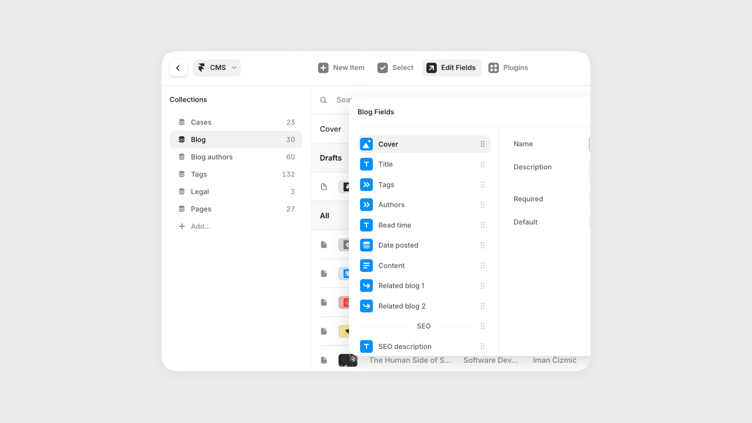 This was deliberate. Prismic's content model was built around slices, which are modular content blocks that could be assembled in flexible combinations. Framer's CMS is simpler and flatter, with collections made up of typed fields. Rather than trying to force one structure into the other, we used the migration as an opportunity to audit and clean up our content.