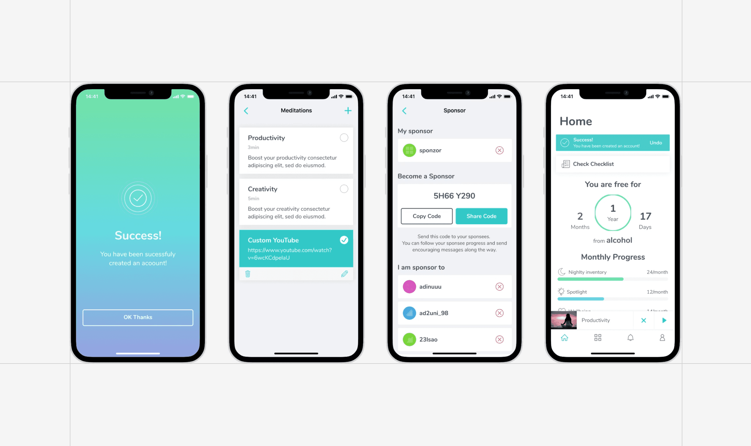 Pairing up sponsors and sponsees - implement an efficient method for pairing sponsors with their sponsees by defining a unique ID code for users to send to other users in order to become a sponsor/sponsee. Once connected, sponsors can track and motivate their sponsees helping them overcome their addiction